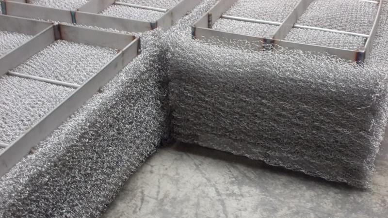 这种丝网除雾器在下游一侧(外部)填充玻璃纤维垫层和金属合金丝网二次夹带控制层。与传统丝网除雾器相比,方便维护和拆卸是CS产品的一大优势。